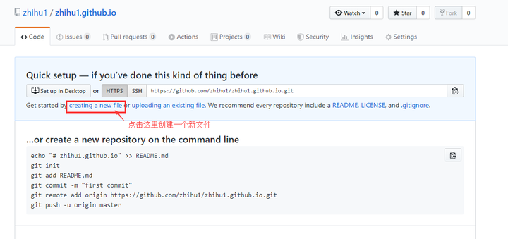 4,接着下一步页面会比较复杂,你会看到一大堆看不懂的东西,其实那些事git操作提示。如果你熟练git的话就知道了。不过我们不管这些,我们只需要创建一个新的文件就行啦!