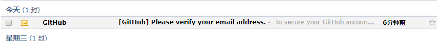然后Github会给你注册的邮箱发送一个确认链接,请点击链接确认,不激活的话是无法正常使用Github的服务的。这个是Github的反爬虫系统。(题外话:Github的反爬虫系统很强很强!)