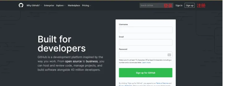 2.用 Firefox 打开 GitHub 官网,进入注册页面: