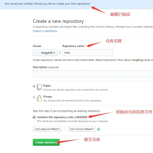 点击创建仓库,现在你就有一个名为hello的项目了,