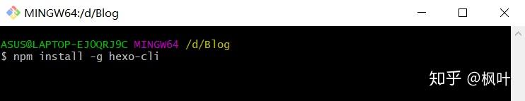 接下来就是安装Hexo,首先在D盘建立一个文件夹 Blog,点开 Blog 文件夹,鼠标右键打开 Git Bush Here,输入npm命令安装Hexo: