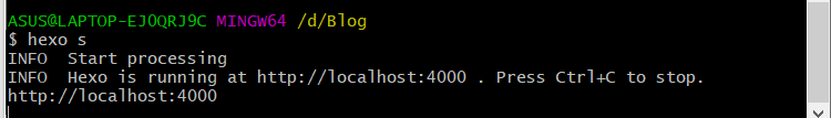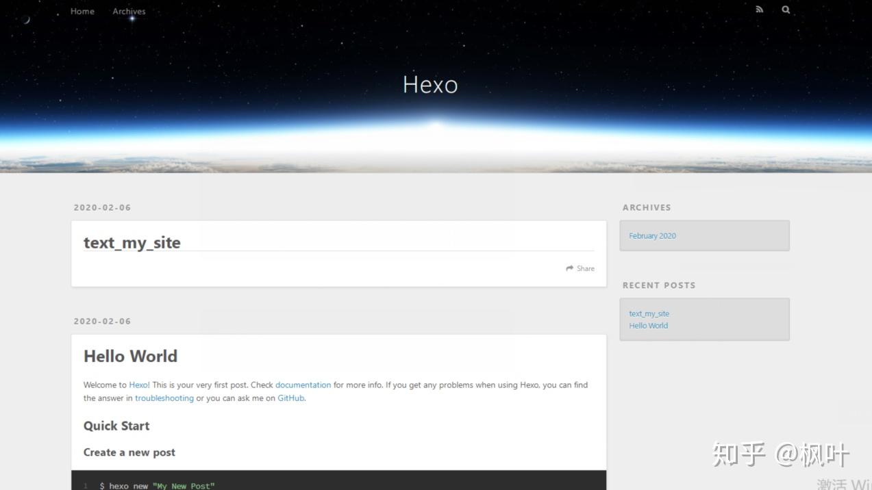这时网页已经部署完成,输入 hexo s 命令可以查看: