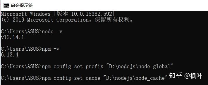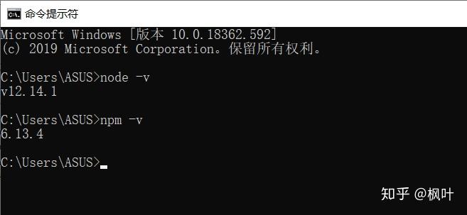 安装完成可以用打开cmd检验一下是否安装成功,用 node -v 和 npm -v 命令检查版本,如下图: