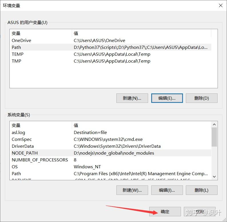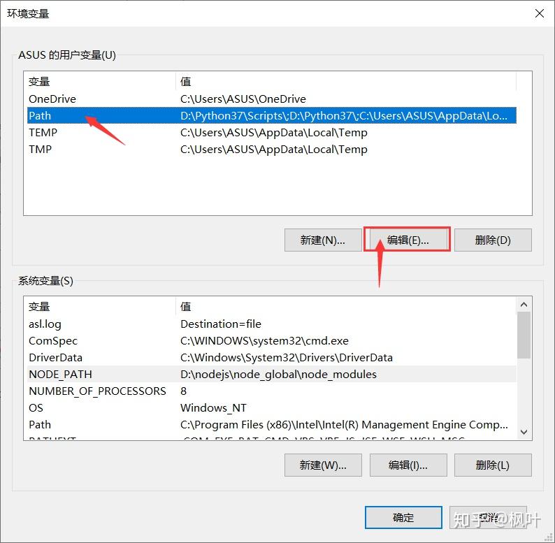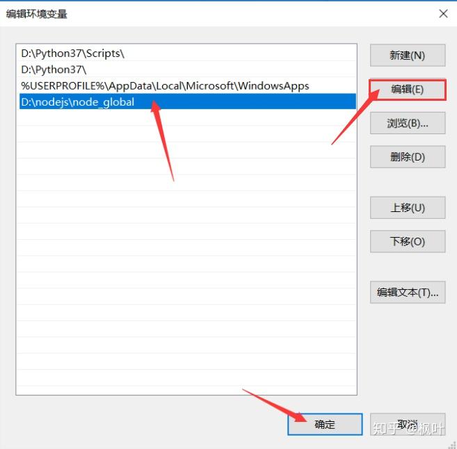 然后编辑用户变量里的Path,将相应npm的路径改为:D:\nodejs\node_global,如下图: