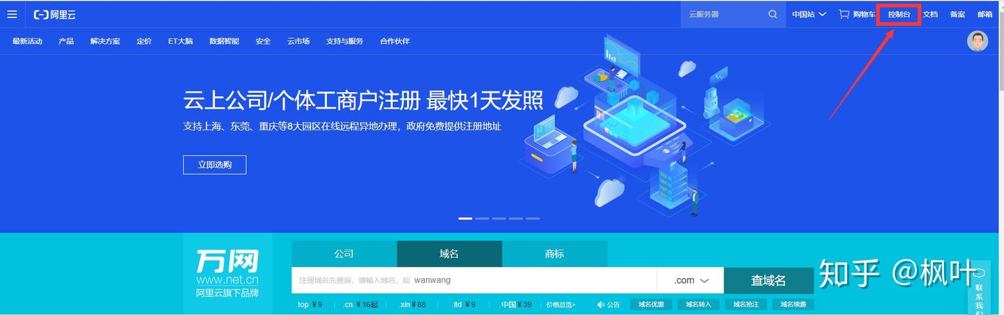 如果没有注册要先注册一个账号,如果已经注册过直接登录就行,然后点击控制台: